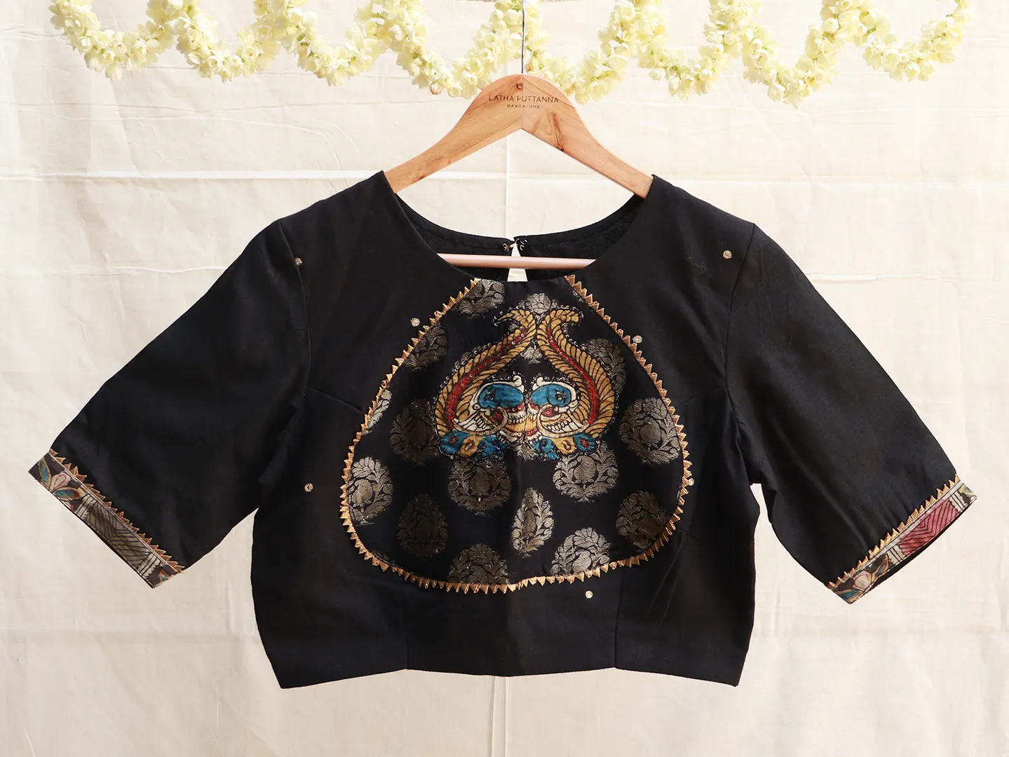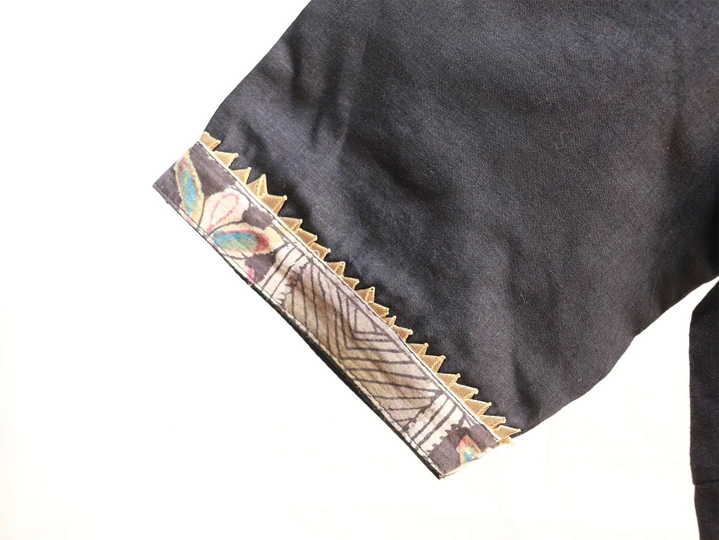 Sleeve Detail - Hand painted Kalamkari border and gota